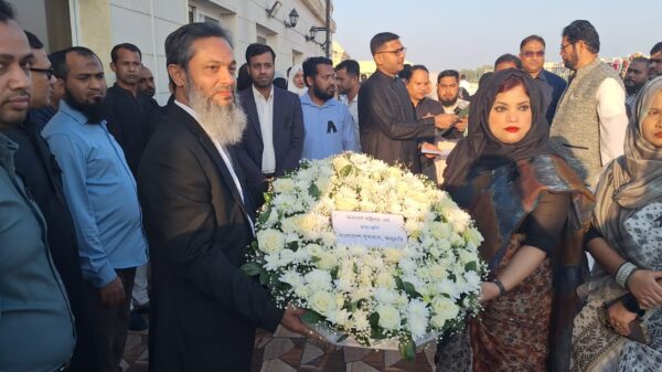 স্টাফ রিপোর্টার: অমর একুশে ও আন্তর্জাতিক মাতৃভাষা দিবস উপলক্ষ্যে ঐতিহাসিক ভাষা আন্দোলনের শহীদদের প্রতি গভীর শ্রদ্ধা নিবেদন করেছেন রাষ্ট্রপতি মো. সাহাবুদ্দিন ও প্রধানমন্ত্রী তারেক রহমান। আজ শুক্রবার দিবাগত রাত ১২টা ১ মিনিটে রাষ্ট্রপ্রধান কেন্দ্রীয় শহীদ মিনারের বেদীতে পুষ্পস্তবক অর্পণের মাধ্যমে শ্রদ্ধা নিবেদন করেন। ঘড়ির কাঁটা ১২টা বাজার সঙ্গে সঙ্গেই তিনি বেদীর দিকে এগিয়ে যান এবং
