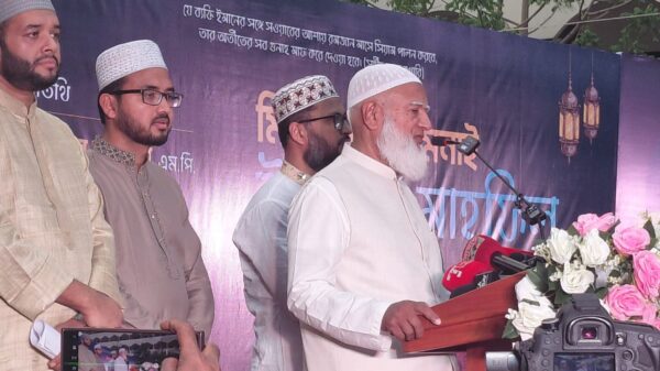 স্টাফ রিপোর্টার: পবিত্র মাহে রমজান উপলক্ষে তা’মীরুল মিল্লাত কামিল মাদরাসা টঙ্গী অ্যালামনাই অ্যাসোসিয়েশনের উদ্যোগে অ্যালামনাই ইফতার মাহফিল অনুষ্ঠিত হয়েছে। সোমবার বিকালে মিল্লাত টঙ্গী ক্যাম্পাসে আয়োজিত এ অনুষ্ঠানে প্রাক্তন শিক্ষার্থী, আলেম-উলামা, রাজনৈতিক ব্যক্তিত্ব এবং বিভিন্ন শ্রেণি-পেশার বিশিষ্টজনদের উপস্থিতিতে এক প্রাণবন্ত মিলনমেলায় পরিণত হয় আয়োজনটি। অনুষ্ঠানে প্রধান অতিথি হিসেবে উপস্থিত ছিলেন বাংলাদেশ জামায়াতে ইসলামীর আমীর,বিরোধীদলীয় নেতা ও