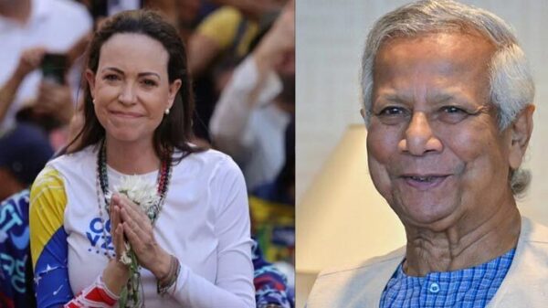 স্টাফ রিপোর্টার: ভেনিজুয়েলার গণতন্ত্রের জন্য সাহসিকতার সঙ্গে লড়ে যাওয়া মারিয়া কোরিনা মাচাদোকে ২০২৫ সালের নোবেল শান্তি পুরস্কার অর্জনের জন্য অভিনন্দন জানিয়েছেন বাংলাদেশের নোবেল শান্তি পুরস্কার বিজয়ী অধ্যাপক মুহাম্মদ ইউনূস। শুক্রবার