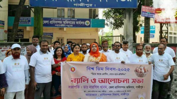 গাজীপুর প্রতিনিধি : “ডিমে আছে প্রোটিন—খেতে হবে প্রতিদিন” এই প্রতিপাদ্যকে সামনে রেখে সারা দেশের মতো গাজীপুরেও পালিত হয়েছে বিশ্ব ডিম দিবস। রবিবার (১২ অক্টোবর) সকালে গাজীপুর জেলা প্রাণিসম্পদ দপ্তরের উদ্যোগে