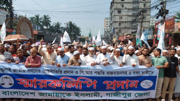 গাজীপুর প্রতিনিধি: জুলাই জাতীয় সনদের আইনি ভিত্তি প্রদান, পিআর পদ্ধতিতে নির্বাচন বাস্তবায়নসহ ৫ দফা দাবিতে গাজীপুর জেলা প্রশাসকের নিকট স্মারকলিপি প্রদান করেছে বাংলাদেশ জামায়াতে ইসলামী। শনিবার (১২ অক্টোবর) সকাল ১০টায়