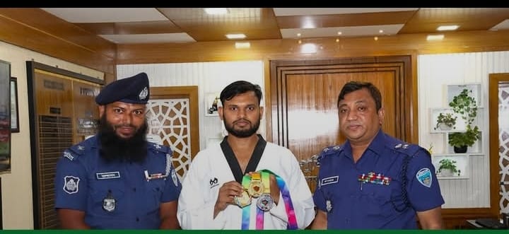 বান্দরবান প্রতিনিধিঃ বাংলাদেশ তায়কোয়ান্দো ফেডারেশন চ্যাম্পিয়নশিপ ২০২৪ (৭৫ কেজি ওজন) এ চ্যাম্পিয়ন হয়েছেন বান্দরবান পার্বত্য জেলার পুলিশ সদস্য কনস্টেবল শাহরিয়ার মাহমুদ তুষার। এর আগে তিনি বাংলাদেশ পুলিশ কারাতে, তায়কোয়ান্দো,