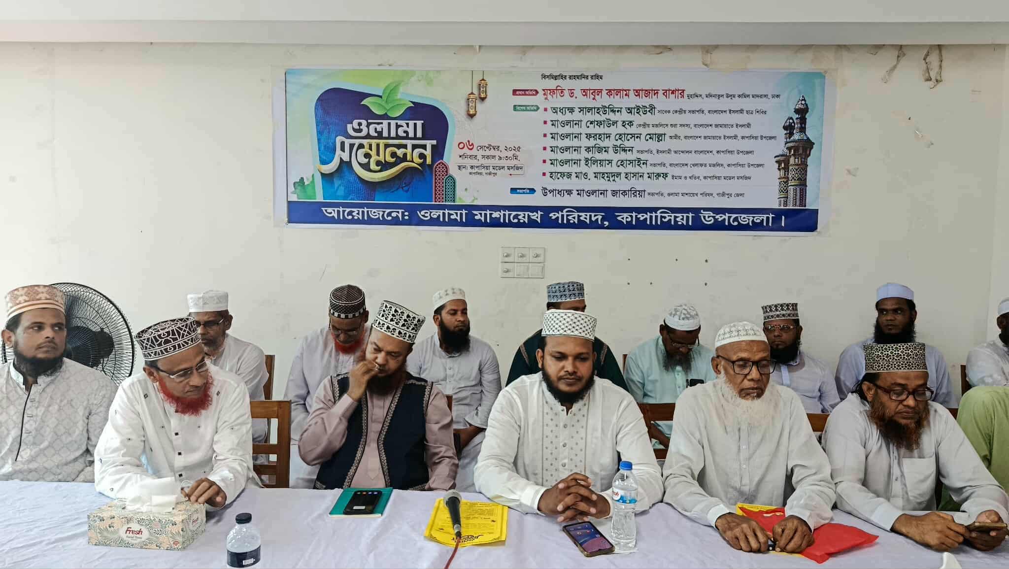 সাইফুল্লাহ লবিব, কাপাসিয়া (গাজীপুর) : গাজীপুরের কাপাসিয়া উপজেলা ওলামা মশায়েখ পরিষদের উদ্যোগে স্থানীয় উপজেলা মডেল মসজিদ কমপ্লেক্স মিলনায়তনে ” ওলামা সম্মেলন ” অনুষ্ঠিত হয়েছে। গাজীপুর জেলা ওলামা মশায়েখ পরিষদের সভাপতি