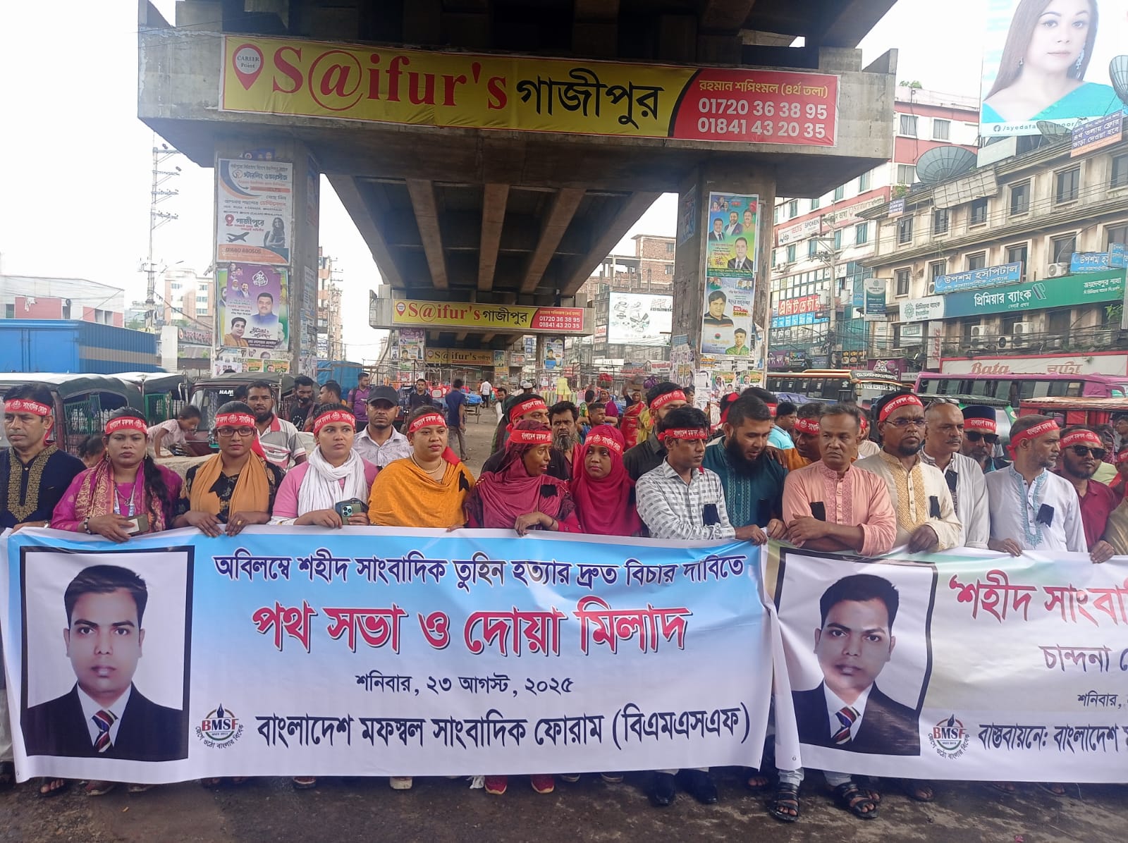 স্টাফ রিপোর্টার: দৈনিক প্রতিদিনের কাগজ পত্রিকার গাজীপুর প্রতিনিধি আসাদুজ্জামান তুহিন এর হত্যাকারীদের দ্রুত বিচার চেয়ে পথ সভা ও দোয়া মিলাদের আয়োজন করেছে বাংলাদেশ মফস্বল সাংবাদিক ফোরাম (বিএমএসএফ)। শনিবার (২৩ আগস্ট),