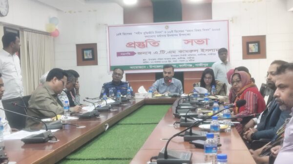 কালীগঞ্জ প্রতিনিধি: গাজীপুরের কালীগঞ্জ উপজেলায় ২৭নভেম্বর রোজ বৃহস্পতিবার ১৪ ডিসেম্বর শহীদ বুদ্ধিজীবী দিবস ও ১৬ ডিসেম্বর মহান বিজয় দিবস-২০২৫ উদযাপন উপলক্ষে কালীগঞ্জ উপজেলা প্রশাসনের উদ্যোগে প্রস্তুতিমূলক সভা অনুষ্ঠিত হয়েছে। ২৭