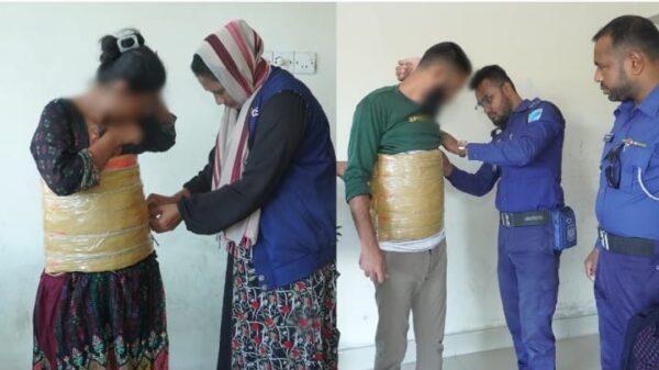 নরসিংদী থেকে সাদ্দাম উদ্দিন রাজ : নরসিংদীর পৌর এলাকা থেকে ভিন্ন কৌশলে গাঁজা বহনকালে নারীসহ দুই মাদক কারবারিকে আটক করেছে পুলিশ। শহরের ব্রাহ্মণপাড়া এলাকার ইউএমসি জুট মিল সংলগ্ন বালুর মাঠ