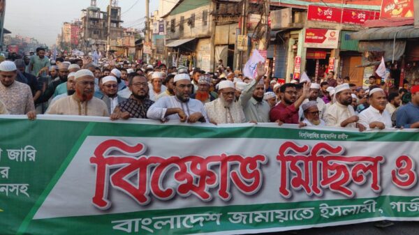 গাজীপুর প্রতিনিধি: জুলাই জাতীয় সনদ বাস্তবায়ন আদেশ জারি ও জাতীয় নির্বাচনের পূর্বে গণভোট আয়োজনসহ পাঁচ দফা দাবিতে গাজীপুরে বিক্ষোভ মিছিল ও সমাবেশ অনুষ্ঠিত হয়েছে। শুক্রবার বিকেলে মহানগরীর ভোগড়া বাইপাস চৌরাস্তা
