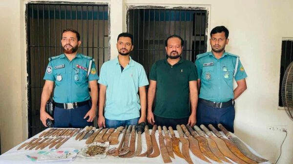 গাজীপুর প্রতিনিধি: গাজীপুরে যৌথবাহিনীর অভিযানে বিপুল পরিমাণ দেশীয় অস্ত্র, গাঁজা ও নকল ডায়মন্ড সহ দুজনকে আটক করা হয়। বুধবার (২৯ অক্টোবর) রাতে গাজীপুর আর্মি ক্যাম্পের ১৪ ফিল্ডি রেজি: আর্টিলারির নেতৃত্বে